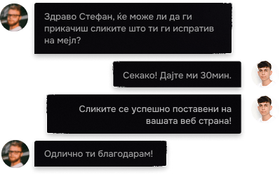 Нема чекање со месеци како што е познато. Работиме брзо, структурирано и транспарентно. Ќе добиеш прогрес на секој неколку дена, а целосниот проект за максимум 2 недели.